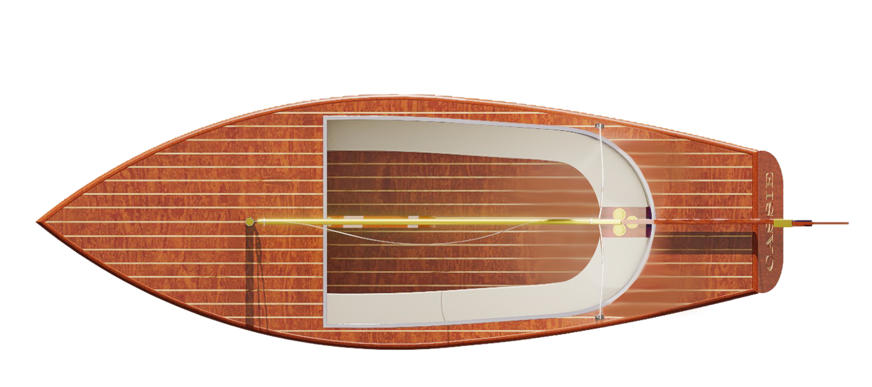 É deslizando pela água, encontra-se um casco moderno, rápido e de alta performance.